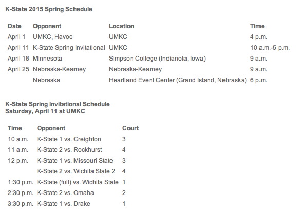 Kansas State had a strong outing in their first spring competition in Kansas City. Brooke Sassin led in kills. (link)