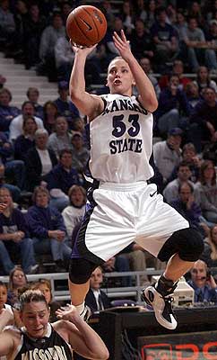 There's a nice story on Ashley Sweat's contributions to the team in the January 8th Manhattan Mercury. (Ashley just hit a three-pointer as I was typing this paragraph, and she got another shot before I could finish the sentence!) Future journalist (and one of the best quotes in athletics) Shalee Lehning calls Ashley, "every team's worst nightmare."