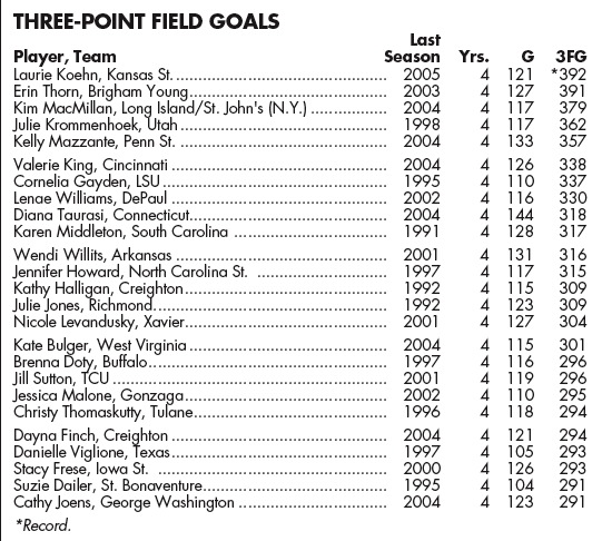 Shalee Lehning continues to amaze people by contributing in so many ways, and the intangibles of her leadership and communication cannot be overlooked. I think Shalee just wills us to victory. Her 6-of-11 from the field translates to a solid 55%. Lehning added six more to her assists collection. As you can see above, she is certain to break the amazing Mahoney's career record. Since the Cats are headed for the NCAA tournament, this could occur in her junior year!