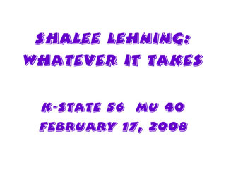 - "That kid tore us up." —Bonnie Henrickson, KU coach, of Shalee Lehning